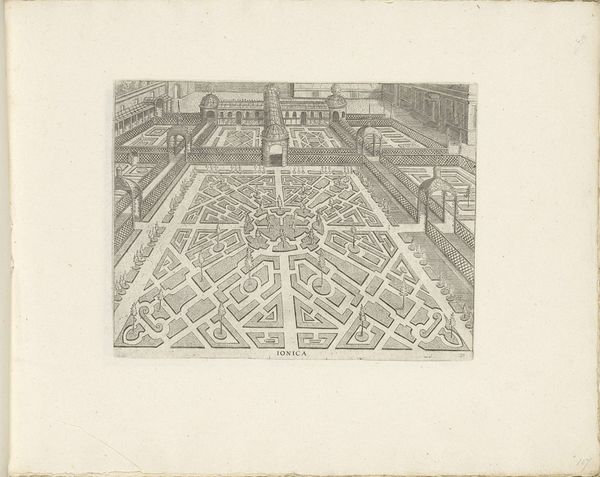 This is an anonymous engraving of a garden with a central parterre, whose date remains unknown. The garden is designed with geometric precision, featuring a star-shaped compartment at its center. This image evokes the formal gardens favored by the aristocracy, spaces which mirrored the rigid social hierarchies of the time. The garden's design creates an environment of control and order, reflecting the power and privilege of its owners. But what did it mean to be in such a space? The maze-like structure of the garden invites reflection on the choices, the paths we take in life, and the inevitable dead ends. The garden becomes a metaphor for life's journey, one filled with both beauty and complexity. The emotional response to this image might be one of calm contemplation, or perhaps a feeling of being confined within its structured boundaries. Ultimately, the image serves as a reminder of how constructed environments reflect and shape societal values, influencing our perceptions and experiences.