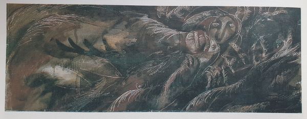 Editor: This is Oleg Holosiy's "Adoration," an acrylic painting from 1989. It’s got a dark, almost oppressive mood, and I’m having trouble deciphering the forms. What strikes you when you look at this work? Curator: The ambiguity is key. Holosiy emerged from the Ukrainian New Wave, a period of artistic liberation during Perestroika. To understand this painting, we must consider the context of a society grappling with newfound freedom after decades of Soviet control. The muddied figuration and somber palette might represent the uncertainties and anxieties accompanying such radical societal shifts. Do you see how the implied "adoration" contrasts with the painting's unsettling atmosphere? Editor: I do now! The title feels almost ironic. The vagueness you pointed out now looks intentional, almost like a statement. Was art being used as a tool for political commentary during this time? Curator: Absolutely. Holosiy and his contemporaries frequently used art to subvert established norms and challenge the dominant ideology. His works from this period question utopian promises, offering raw portrayals of human emotions. Editor: So, the dark mood isn't just aesthetic; it's reflective of a specific socio-political climate. I wouldn't have picked up on that without understanding the historical context. Curator: Precisely. Consider how museums historically presented art that reinforced certain ideologies. Artists like Holosiy responded by making work that invited critical reflection instead of passive acceptance. How does this historical understanding change your perspective on the painting's composition and title now? Editor: It's much more potent. Now, "Adoration" feels less like a simple depiction and more like a charged question about what values are being revered during a time of great upheaval. I'll definitely look into more Ukrainian New Wave art; this has been really insightful. Curator: It highlights the importance of looking beyond the surface. This conversation reminds us that art exists within a larger network of social, political, and historical forces.