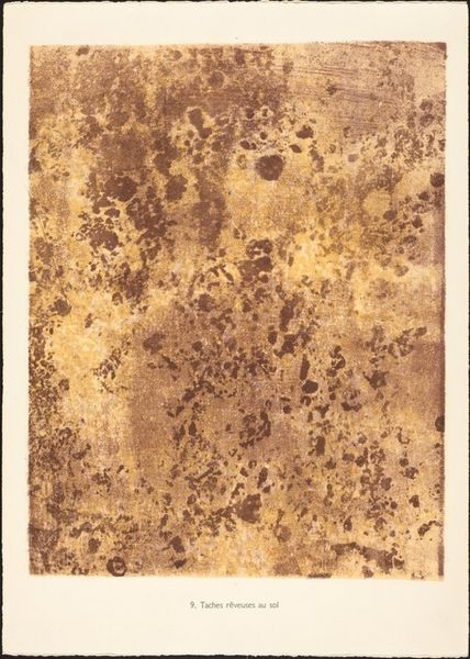 Curator: I find Sam Francis' "Untitled (from Papierski Portfolio) (SF 351)", created in 1992 using acrylic and stain on paper, incredibly calming. What are your first thoughts? Editor: My initial reaction is quite visceral. It feels like peering through a rain-streaked window, the world outside dissolved into hazy blues. There’s a somber yet serene quality about it. Curator: I appreciate that interpretation. Formally speaking, observe the layering of stains. The composition reveals Francis' dedication to the materiality of paint. See how the diluted acrylic bleeds into the paper, creating depth and texture? The 'empty' white space punctuates and activates the design, guiding the eye. Editor: Indeed. In terms of reception, abstract expressionism was greatly tied to American identity during the Cold War, touted as evidence of free expression in contrast to Soviet art. Francis, exhibiting internationally, was therefore a cultural ambassador, even if his work eluded direct political messaging. How much do you think the political environment affected its reception? Curator: Political context undeniably frames our interpretation, yet this particular piece seems to transcend such explicit readings. Focus instead on its exploration of chance. Notice the drips and splatters; the 'accident' becomes integral to the composition. The artist uses chance as a tool to discover new formal relationships, creating dynamic tension with carefully constructed geometry. Editor: While I acknowledge your insightful formal analysis, I can't help but consider the marketplace. This portfolio was produced late in Francis' career, suggesting a canny strategy to appeal to collectors through a controlled, reproducible image. Was it an attempt to democratize access to his work, or rather, to maximize its financial potential? Curator: A complex issue. His prints broadened his reach, bringing his aesthetic to a new audience. From a formalist point of view, it showcases Francis' engagement with pure abstraction and the act of art making. It becomes a record of action. Editor: From my view, considering its production within the context of his mature career, the politics of access and value become very apparent and undeniable, whether intended or not. Curator: A print it may be, the emotion of it feels like it captures a still moment and the joy of a rainy afternoon in that very unique time. Editor: Precisely; and, that unique time involved specific audiences, economies, and the ongoing narrative of abstract art. Viewing these nuances adds to its lasting resonance.