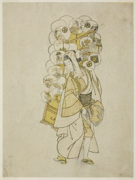 Editor: This graphite drawing, “Stehende Frau mit zwei Bündeln auf dem Kopf, vom Rücken gesehen” or “Standing Woman with two Bundles on her Head, Seen from the Back”, was created around 1771-1772 by Georg Melchior Kraus. There's something very simple and serene about it, even though the woman is carrying such a heavy load. How do you interpret this work? Curator: The image immediately triggers reflections on labour and social structures. The bundles on her head aren't just weight; they're visual signifiers. Consider the historical context – late 18th century. What do these burdens, so casually depicted, truly represent about her role and social standing within her community? Editor: So the bundles and even her simple dress act as symbols, hinting at a larger narrative about the lives of ordinary women? Curator: Precisely. Notice, too, how Kraus positions her. We only see her from the back. Her identity is somewhat obscured, becoming almost emblematic. Does the facelessness amplify her anonymity, making her a representation of an entire class rather than an individual? Think about that and how that reading may or may not be an idealization, typical of Neoclassicism. Editor: It's fascinating how much meaning can be packed into a seemingly simple sketch. I’m now thinking about the politics inherent in everyday life that is depicted and implied here, it brings so much context to her humanity. Curator: And isn’t that the beauty of art? It transforms the ordinary into something profound, asking us to look beyond the surface and engage with the underlying realities. This also brings insight into how women’s labor, so critical in that time, and to the present, can be overlooked. Editor: Absolutely. It’s amazing to reconsider an ordinary sketch in such a culturally profound way!