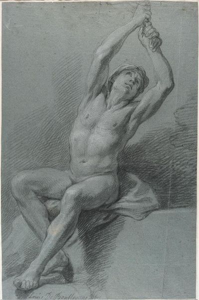 Jean Grandjean made this chalk drawing of a reclining male nude during the late 18th century. His artistic life occurred during a time when the aesthetics of the body were central to artistic expression. Here, the male body is presented in a way that deviates from the period’s traditional representations. The figure is positioned so we don't see the face, which shifts the focus from identity to form, and suggests a narrative beyond conventional portraiture. The vulnerability of the pose invites introspection. How does the absence of a visible face affect our emotional response to the artwork? This piece prompts a closer examination of art's role in shaping cultural ideals and individual experiences. It encourages us to think about how we connect with images and the stories they convey.