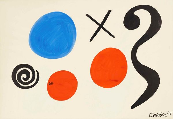 Alexander Calder made ‘Les Tropiques,’ sometime during his career, and it looks like he used gouache, maybe, or acrylic. It's all about the push and pull of simple shapes, the kind kids make when they are learning to draw. There's a playfulness in the colours: sunny yellows, vibrant reds, deep blues, all outlined with this confident black. Look at the big red shape on the left, like a geometric letter 'E,' but also sort of looks like it's trying to nudge that big yellow circle. Then you notice how the black outline is not just a boundary, but a way to hold all the parts together. It makes me think of Joan Miró, and his language of signs and symbols. This piece isn’t trying to trick you with fancy realism. It’s about basic forms and how they come together to make something lively and totally unique. It's like a reminder that art can be about fun, and that simple is good.