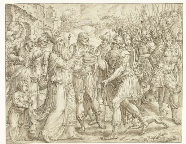 Editor: Here we have "Calendar: May," a page from the Très Riches Heures du Duc de Berry, made around 1416 by the Limbourg brothers. It's painted with gouache, and the first thing I notice is how it juxtaposes earthly celebration with these celestial symbols above. What do you see in this piece, particularly regarding those visual connections? Curator: This image pulses with layered meaning. Note how the procession celebrates May Day – a fertility rite. But observe, also, how the zodiacal wheel isn't merely decorative. It links earthly festivity with the cosmic order. The sun chariot driving through the heavens echoes the forward motion of the courtly procession, doesn't it? It suggests a divinely ordained rhythm to life, a kind of celestial mirroring. Editor: So, the artist is implying that the ruling class is connected to the cosmos? Curator: Precisely. Look at the attire, the opulence – they're visually asserting power, which, in turn, finds legitimacy within the cosmic architecture presented above. The Zodiac symbols literally crown the ruling class and remind them of their allegiances. How do you interpret the overall effect of merging the sacred with the political? Editor: It makes the ruling class seem almost… inevitable, I guess. As if their power is written in the stars. The Limbourg brothers have given May Day, already full of established traditional rituals, even further visual language of symbolic meaning. Curator: Yes! The piece invites a visual literacy. By decoding these symbolic connections, we grasp how images serve to construct, and legitimize, narratives of power that resonate across both earth and sky. Editor: This has offered an incredible approach to how the artwork builds complex visual relationships between the imagery of people and the zodiac! Thanks.