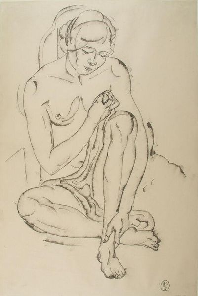 Curator: It’s my pleasure to introduce Denman Waldo Ross’s painting, "Portrait of David," housed right here at the Harvard Art Museums. Editor: The first thing that strikes me is its vulnerability; the figure's downward gaze and the soft, diffused light create a sense of intimacy. Curator: Absolutely, there is an internal feel here. In traditional iconography, depictions of figures often carry symbolic weight; here, the lack of adornment strips away external identifiers, leaving us with a raw, perhaps universal, human form. Editor: I see that too, and it makes me consider the gaze. Who is David? And why are we, the viewers, invited to observe this private moment? It brings up questions of power dynamics and representation. Curator: Perhaps it is less about power and more about empathy. The artist captures a moment of introspection, inviting us to connect with David on a deeply personal level, through shared feelings. Editor: Maybe. It's an image that definitely leaves one with more questions than answers, though. Curator: Indeed. It prompts us to reflect on how we perceive and interpret the human figure in art, and what narratives we impose upon it.