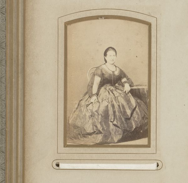 Johannes Hinderikus Egenberger made this portrait photograph of a woman wearing a bonnet and checkered dress. The photograph comes to us from a time when photography studios were becoming more widespread. This suggests the sitter may have come from the middle classes. The image is an example of a carte-de-visite, a calling card, that could be given to friends or family members. The woman’s dress is quite elaborate, and we might ask what the social conventions were for such a formal portrait. What was the sitter trying to convey about herself? How does this compare to other portraits from the same period, and what can those comparisons tell us? As an art historian, I might consult sources such as etiquette manuals, fashion magazines, and other images of the period, to better understand the codes and conventions of this photographic portrait. These resources can help us to place the image within the broader social and cultural context of the time.