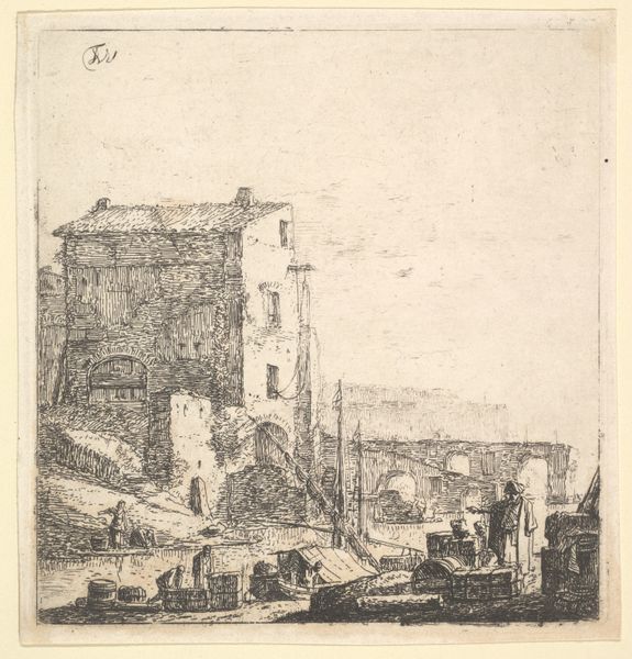 Israel Silvestre created this print of a harbor in Rouen sometime in the 17th century. Silvestre was a draughtsman, etcher, and print publisher, who came from a family of artists. He was appointed engraver to the King of France, and his works often served as propaganda, celebrating the King's power. In this print, Silvestre represents the gate, bridge, and port of Rouen. Note how the figures crossing the bridge and milling near the boats are dwarfed by the architecture. Commerce and trade are suggested by these figures, yet the image emphasizes France’s military strength and commercial reach through the imposing architecture. This etching illustrates not just a scene, but also the power dynamics of the era. This piece offers a window into the economic and political climate of 17th-century France, reflecting the aspirations and realities of its society. How do you think visual art at this time was complicit in the power dynamics it portrays?