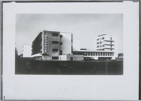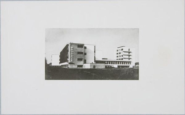 Curator: Eric Baden's photograph, "L.I.R.R. Station, Mineola," offers a stark view of suburban transit. Editor: It feels so impersonal, almost clinical. The high contrast and sharp lines give it a very detached quality. Curator: The photo captures a period of significant suburban expansion and reliance on commuter rail. The architecture speaks to the evolving landscape. Editor: The composition is interesting, though. The lines of the train tracks and overhead wires create a complex visual web, drawing the eye across the scene. Curator: That web also represents the networks of power and movement that shaped these communities, reflecting themes of accessibility and social change. Editor: Perhaps, but the visual effect is undeniably strong. It's a study in geometric forms and tonal values, regardless of its historical context. Curator: True, but understanding its moment provides greater depth. Editor: I suppose both viewpoints offer unique insights. Curator: Precisely, now let’s move to the next piece.