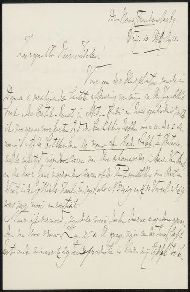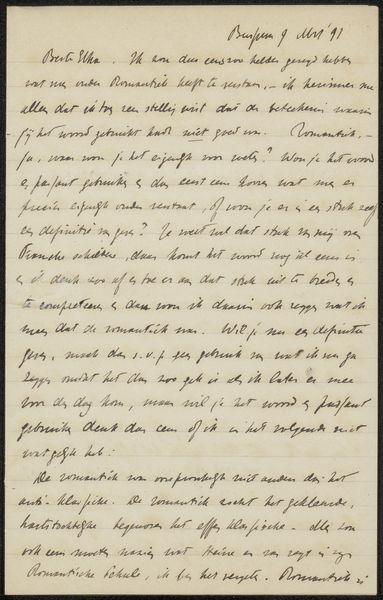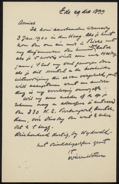 This is a letter, written in 1888 by the Dutch artist Willem Witsen, and addressed to Jan Veth. The letter is handwritten, and exemplifies an artistic process rooted in direct, personal communication. The material is simple: paper and ink, the tools are a pen and Witsen’s own hand. The flow of the ink across the page reveals Witsen’s thoughts, creating a texture of language, communication, and personal expression. The choice of handwriting over mechanical printing also highlights the value placed on individuality and artistry. It required time, effort, and the skilled hand of the artist, offering a direct and intimate connection between Witsen and Veth. By emphasizing these aspects of materials, making, and social context, we recognize how the letter transcends its function as mere correspondence. It challenges traditional distinctions between fine art and craft, revealing the artistic potential of everyday objects and practices.