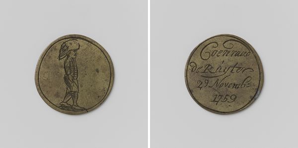 This is a guild badge for Joonis Tuenisz de Vrij, of the Amsterdam shipbuilders, crafted from bronze by an anonymous artist. These badges served as symbols of identity and belonging within the powerful trade guilds of the Dutch Golden Age. With maritime trade at the heart of Dutch prosperity, belonging to the shipbuilders' guild meant access to networks of power and influence. The badge not only highlights the significance of the guild, but also the personal identity of Joonis Tuenisz de Vrij, who had it made. One side depicts a ship, a symbol of trade, exploration and naval power that defined the era. On the reverse, the inscription personalizes the object, connecting it to an individual within a larger collective. This badge represents the intersection of personal identity and professional affiliation in a society that was rapidly expanding its global reach.