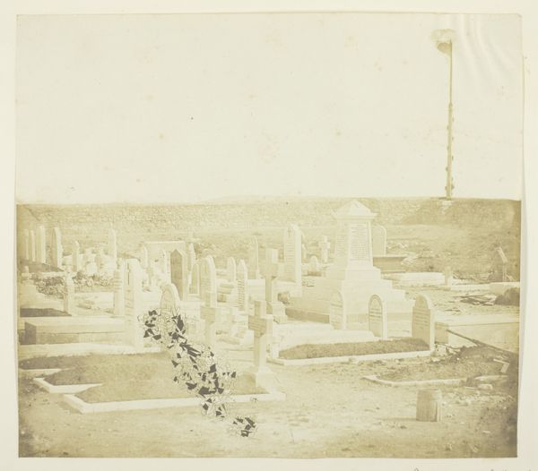 Editor: Here we have James Robertson’s “Cemetery on Cathcart's Hill,” a daguerreotype from 1855. The image has this hazy, almost ethereal quality, and I find it really melancholic. What do you see in this piece? Curator: This daguerreotype offers a potent lens through which to consider Victorian-era anxieties around death, particularly as experienced during the Crimean War, which Robertson documented. Photography was in its infancy, yet it offered a new way to confront and perhaps manage grief, both personally and collectively. Editor: So, this is more than just a picture of a cemetery? Curator: Absolutely. Consider Cathcart's Hill's historical context. This cemetery may house war casualties or those affected by the broader socio-economic upheaval of the time. How does photography function here? Does it provide solace, memorialize loss, or perhaps, in its starkness, serve as a critique of Victorian society's romanticization of death? Editor: It’s interesting to think of the camera itself as a tool for social commentary in that period, to grapple with the very real consequences of political decisions. Curator: Precisely. By showing a cemetery, a place usually set aside and ignored, the image urges the audience to reflect on social values and their own mortality. Are there contemporary parallels we can draw about collective loss and remembrance today? Editor: I'm definitely seeing this photograph in a new light now. The way it encourages a dialogue about memory and accountability… thank you! Curator: Indeed! And that is the enduring power of art—to spark critical reflections that resonate across time and social contexts.