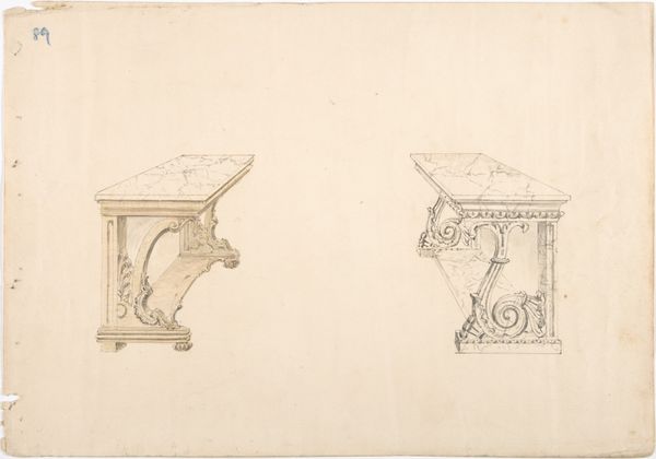 Editor: Here we have Karl Ballenberger’s study of a Gothic Crocket Capital, created with pencil, graphite and ink. The rendering of the capital gives the impression of weight despite the airy lightness of the foliage at the top. How do you read the geometry in this drawing? Curator: The structure is immediately apparent. Note how Ballenberger articulates the vertical thrust from the base, counterpointed by the spreading, almost organic forms of the crocket, then stabilized again by the rectilinear abacus at the very top. The pencil work seems calculated to produce a range of tones. What do you observe about that? Editor: The shadowing definitely enhances the three-dimensionality. It is almost sculptural in its depth and makes you believe you can reach out and touch it. Is there a significance to the contrast between hard lines and flowing forms? Curator: It seems to highlight the dialogue between geometric precision, expressed through the lines, and the dynamism of the organic world rendered with the ink wash. Consider how each structural element depends on the others to form a unified aesthetic statement, wouldn’t you say? Editor: Yes, that’s a beautiful way of putting it. It shows that even architectural components can express something about the wider world and how it is organised through contrasting relationships. Curator: Indeed, a meditation on structure and embellishment. Editor: I’ve certainly learned to appreciate how much careful planning goes into making a relatively simple drawing seem so balanced and complete!