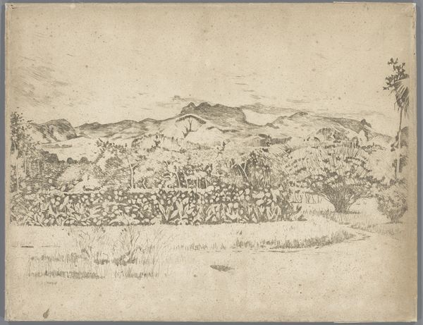 Willem Witsen drew "Landschap in Nederlands-Indië" with graphite on paper, and what strikes me is how he coaxes so many tones out of a seemingly limited palette. It's like he's feeling his way through the landscape, mark by mark. The layering of graphite gives the image a hazy, dreamlike quality. See how the mountains in the background almost dissolve into the sky? Then there's the foreground, where the foliage is rendered with a flurry of tiny, energetic strokes. It's not about botanical accuracy, but about capturing the feeling of abundance. Witsen really digs into the nitty-gritty of looking and drawing here. It reminds me a bit of Corot's landscapes, that same interest in atmosphere and light. Both artists invite us to slow down, to really see the world around us, and to appreciate the messy, imperfect beauty of it all.