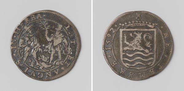 This silver medal, “Vergaan van de Spaanse armada”, was made anonymously in 1588. It commemorates the defeat of the Spanish Armada, a pivotal moment in European history. On one side, ships clash amidst turbulent waves, symbolizing the naval battle. The inscription "CLASSES. DISIECTA. ET. DVFLATA. 1588," translates to "The fleets scattered and sunk," underscoring the scale of the Spanish defeat. On the other side, the crowned arms of Zeeland rise from the sea. Consider this medal as more than just a historical marker; it embodies the collective sigh of relief and the surge of national pride felt by the Dutch. The medal served as a tangible expression of identity and resistance in a time of conflict. It offers insight into how societies remember, celebrate, and mythologize their victories, shaping national narratives for generations.
