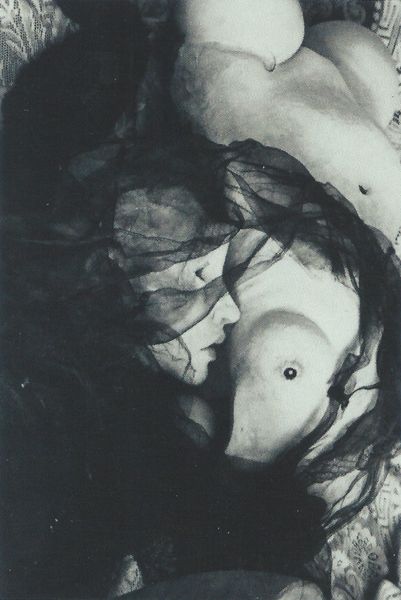 Editor: So, here we have Douglas Prince’s "Self-Portrait as Dreaming Man," a gelatin-silver print from 1972. The image has such a still, quiet quality. The figure submerged in water is contrasted with the landscape above in a way that feels symbolic. What do you see in this piece? Curator: Immediately, I see the water, which throughout art history has represented both cleansing and the subconscious. The figure immersed evokes a symbolic baptism or perhaps a descent into the self, but which is it? Consider the cord-like string across the man's forehead - is it a physical restraint, suggesting suppression, or an anchor to something deeper, like a connection to unseen forces? Editor: That’s a great point about the cord. It could represent so many things! And the way the landscape looms above him almost feels oppressive. Curator: Precisely. The earth and sky form a psychological barrier. Note also how Prince positioned himself beneath the "moon." Is the moonlight bathing him, offering clarity? Or does the desolate landscape reveal existential isolation? The single "moon" brings out Jung's idea of a person trying to integrate disparate pieces of themselves. What’s your impression? Editor: It’s almost like he's mediating between different planes of existence: conscious and unconscious, earth and sky… Trying to reconcile these forces. Curator: Exactly. Think of the history of representing the artist. Often, a "portrait" involves symbolic objects – a skull, a book, etc. – but here, nature becomes the language of the self, where the moon echoes illumination and the landscape speaks to his internal life. A perfect synthesis of artist and dream state. Editor: I never thought about landscape operating like that! It reframes my thinking about photographic self-portraiture. Curator: And what do you take away from seeing it combined in that way? Editor: I see how personal symbolism embedded within this work speaks to timeless and universal ideas. It prompts self-reflection about who we are, how we construct identities through cultural cues, and where memory resides in dreams. Thank you.