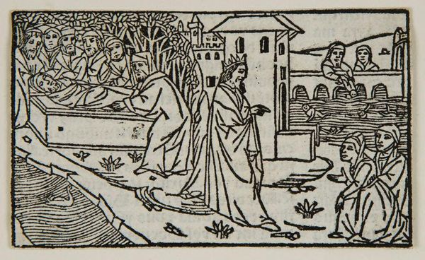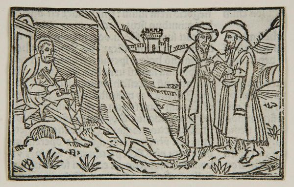 Editor: This is Illustration LX, by an anonymous artist. I'm really struck by how stark it is, this black and white landscape. The lines create such depth, but the story feels just out of reach. What do you make of it? Curator: For me, it’s like stumbling upon a hidden, whispered moment. The anonymous artist invites us to participate, piecing together the narrative from the fragmented scenes. It's like catching fleeting glimpses of a dream. Who are these figures, and what world do they inhabit? It's open to interpretation, isn't it? Editor: Absolutely. I think the real magic here is that the artist isn't telling us what to think. Curator: Precisely. And in that silence, we find our own stories reflected back at us.