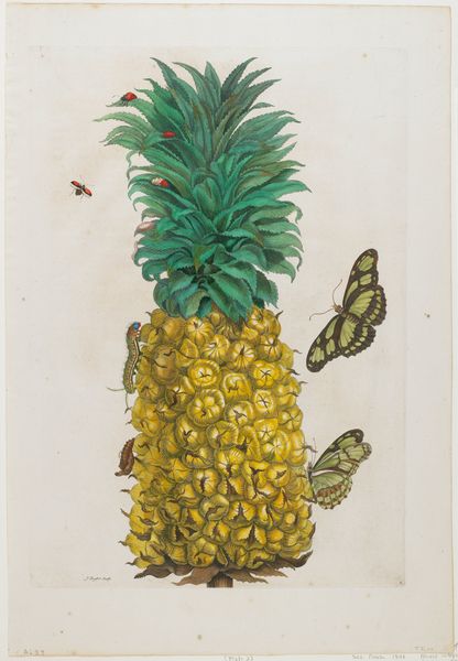 This print of a Snake, whose author is anonymous, captivates with its meticulous detail and vibrant, though somewhat muted, coloration. The composition, dominated by a central botanical form, immediately draws the eye to the juxtaposition of diverse life stages and species. The artist presents a convergence of natural forms—a caterpillar, a snake, and a moth—each rendered with precision. The snake, coiling around the stem, is perhaps the most striking element, its pattern meticulously recreated. This careful rendering invites us to consider the print's function as both art and scientific document. We see a clear emphasis on line and form, which allows for a detailed, almost taxonomic study of each creature. The interplay between these elements destabilizes any fixed narrative. Is this a depiction of harmony or predation? The ambiguity challenges us to reconsider our relationship with the natural world. As you continue to explore, consider how the artist’s formal choices—the careful balance of shapes and the subtle gradations of color—contribute to this print's lasting impact.