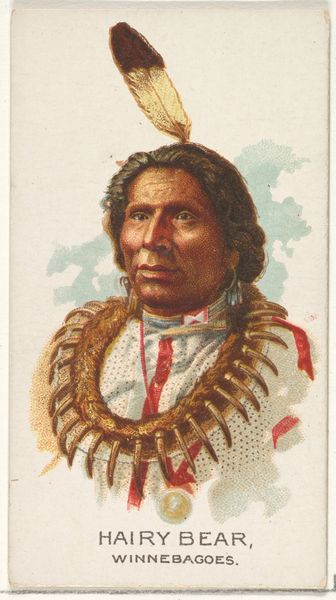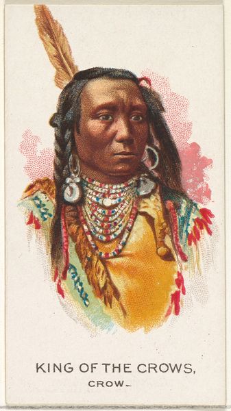 This portrait of Striker, an Apache chief, was created by Allen & Ginter for their cigarette cards. At first glance, the composition presents a straightforward bust, yet the interplay of color and texture creates a dynamic visual experience. The subject is framed by a warm palette of earth tones in his skin and clothing, contrasted by the cooler greens and purples of his adornments. Note how the artist uses a subtle gradation of tones to give depth and volume to Striker’s face. The large circular ornament draws the eye, its geometric simplicity set against the more organic shapes of the draped fabrics. The card format flattens the image, reducing depth and emphasizing surface patterns. This commercial context complicates its reading. The image functions both as a representation of an individual and as a signifier within a larger system of branding and consumerism. The very act of portraying Striker flattens and commodifies his identity for mass consumption, reducing Striker to an exoticized commodity.