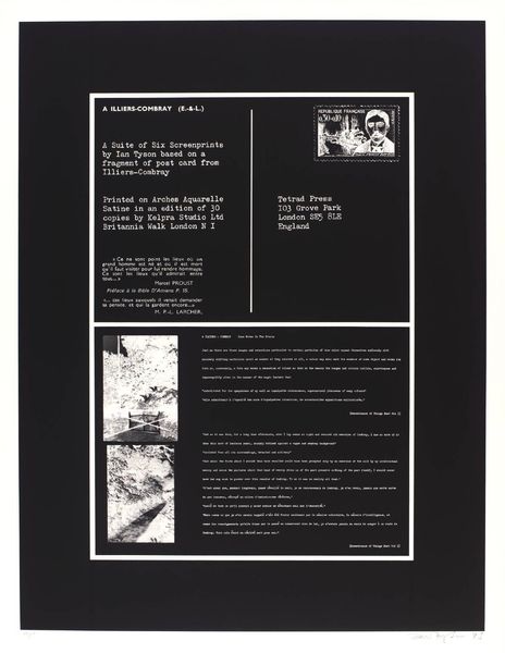 Editor: This untitled print by Eduardo Paolozzi uses screen printing to present seemingly unrelated images together. I find the overall effect quite unsettling. What symbols do you see recurring here? Curator: Notice the recurring motif of technology. Paolozzi often explored the promises and anxieties surrounding technological advancement, reflecting a post-World War II fascination with progress alongside a fear of its potential consequences. Do these images resonate with our current digital age? Editor: Absolutely. The juxtaposition of the technological with the mundane makes me think about our dependence on these systems. Curator: Precisely. By layering and repeating these symbols, Paolozzi invites us to consider the complex relationship between humanity, technology, and cultural memory. A dialogue, indeed!