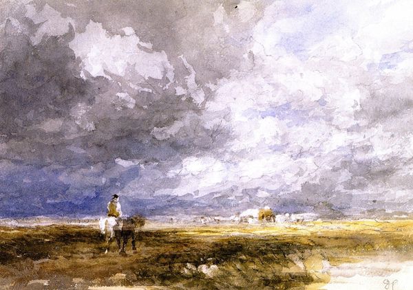 David Cox, who lived from 1783 to 1859, made "The Night Train" using watercolor on paper. Look closely, and you'll see that the washes of pigment create a hazy atmosphere. This gives a sense of depth and movement to the scene. Cox was celebrated for his mastery of watercolor, and his ability to capture the transient effects of light and weather. It is a skill that required careful observation, and a deep understanding of the properties of his materials. The fluidity of the watercolor allows for blending colors, creating the impression of a stormy sky, and the movement of the horses. Notice the lack of crisp lines; he relies on the inherent qualities of the paint to evoke emotion, and convey the urgency of the scene. Cox elevated watercolor to a respected medium, previously considered a preliminary or amateur technique. His work serves as a reminder that true artistry lies not just in the subject matter, but in the artist's sensitivity to materials, and mastery of their chosen craft.