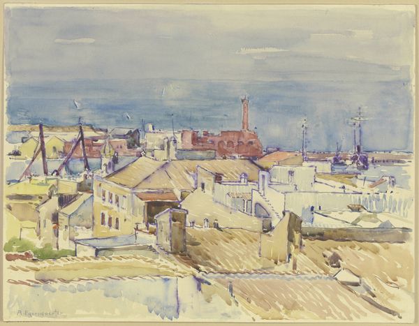 Curator: This drawing is Hermann Lismann's "San Gimignano" from 1923, held here at the Städel Museum. It's rendered in ink on paper. My immediate impression is one of striking verticality. Editor: Yes, the composition is dominated by those tower-like structures—they practically pierce the sky. The limited palette contributes to a somewhat somber, weighty atmosphere. What interests me are the physical properties of the ink itself and how that tonality shifts under different light as it interacts with the fibres in the paper. Curator: Right. The monochrome tones emphasize the monumentality of San Gimignano’s architecture. Lismann seems particularly concerned with the means by which civic identity is physically built and sustained. San Gimignano, famous for its medieval towers erected by wealthy families, stands as a testament to historical social hierarchies and competitive consumption through the labour required to raise these stone towers to the sky. Editor: I agree that there's a socio-economic element, but from a formalist standpoint, the stark contrast creates compelling patterns. I see repetition in those vertical forms of the towers versus the angles in the rooftops, set against the subtly graded sky, where the ink washes provide the light which enhances the sense of depth. And, there’s also a wonderful tactility about it; you sense the artist’s hand and process directly here. Curator: I appreciate your reading of the composition, however this speaks to more than visual enjoyment. These structures aren't merely geometric shapes but signs of dominance, of social ambition played out through architectural endeavor; who would occupy each structure, and whose power those buildings would showcase for those living at street level, for instance. Editor: Yes, both viewpoints offer something valuable. For me it’s the marriage between form and material: The fluid, unpredictable nature of ink somehow enlivens these solid, immovable structures. It injects movement where there is stability, hinting perhaps that nothing stands forever. Curator: It makes me reflect upon how art captures human struggles for distinction in the most tangible way—a story written in stone and interpreted on paper. Editor: And for me, it is a fascinating look into how something seemingly permanent, becomes ephemeral through its translation by means of another art form. A great way to conclude our analysis, I think!