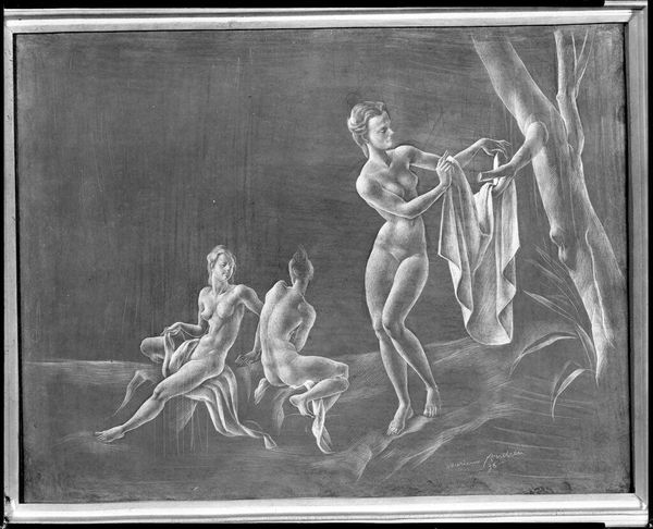 Curator: This somber wash drawing is Alexander Runciman's "Hero and Leander," currently residing at the Harvard Art Museums. There is no date associated with the work. Editor: It’s a bleak composition, isn't it? Raw, almost unfinished in its application of washes, but deeply evocative of despair and loss. Curator: Runciman, active in the late 18th century, often depicted scenes from mythology and literature that explored themes of love and tragedy. Consider the context of Romanticism, where individual emotion and dramatic narratives were highly valued. Editor: The lack of precise detail draws my attention to the materiality – the paper itself, the stark contrast of light and shadow achieved with simple washes. It emphasizes the raw, unfiltered emotion. Curator: Exactly! The sketch-like quality almost brings us closer to Runciman's own process, highlighting the performative aspect of artistic creation during this period. And how the story itself was told and retold. Editor: Perhaps it’s in the immediacy of the medium. It’s more like bearing witness to a moment of human vulnerability, rather than observing a carefully constructed tableau. Curator: Yes, a fitting testament to the story's enduring power. Editor: A poignant reminder that even in sketches, materials can convey profound emotions.