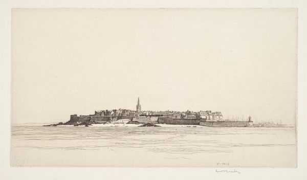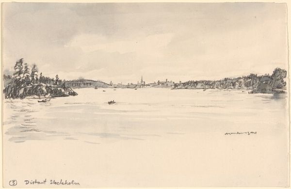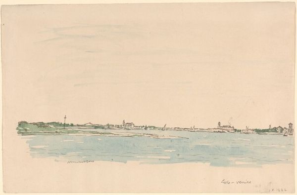 Curator: This is Muirhead Bone’s "Town Of Gallipoli," rendered in pencil and watercolor. It presents a seemingly serene vista of the town across the water. What are your immediate thoughts? Editor: It’s strikingly muted, almost melancholic. The subtle washes of color and delicate lines suggest a quiet, somber atmosphere, which seems quite a contrast to the violent history associated with Gallipoli. I wonder how that tension plays out in his material choices. Curator: Indeed. Knowing that Bone was an official war artist during World War I casts a long shadow. Gallipoli represents one of the greatest military disasters for the Allied forces, fraught with issues of colonial ambition, geopolitical strategy, and immense human cost. Seeing it rendered so softly jars, doesn't it? Editor: It does. Pencil and watercolor are portable and immediate; perfect for a war artist in the field. But these materials, traditionally associated with sketches and preparatory studies, almost soften or domesticate the scene. How does this reflect Bone's own position within that conflict, his relationship to the British military-industrial complex? Curator: That’s precisely the question. Bone's role as an official artist was to document the war effort, but how complicit was he in romanticizing a brutal campaign? This idyllic portrayal begs the question: Whose narrative is he constructing and for whom? It almost feels like propaganda cloaked in artistry. Editor: Propaganda is too simple. It could equally function as a site of mourning. Considering the social context of mourning during and immediately after the war, a work such as this allows for the beginnings of reconciliation between the trauma of war and the memory of homeland. The method in which he produced these works should also not be overlooked. The quick marks denote the experience as being one, immediate process of creating meaning in relation to events occurring. Curator: That reading brings nuance, certainly. Perhaps the quietness speaks not of erasure but a kind of respectful distance. It lets us reflect on the broader consequences of imperial overreach and the lingering trauma of the campaign. It's less about glorifying British might and more about acknowledging the enduring impact of war on the landscape and its people. Editor: The landscape holds the story, the materials evoke it. Understanding these choices makes the artwork itself into a tool to critically reflect on that historical weight. Curator: Yes, considering Bone’s tools alongside the historical and political dimensions transforms a seemingly tranquil landscape into a potent symbol. Editor: Ultimately revealing art's entanglement with both power and the quiet, persistent acts of witnessing.