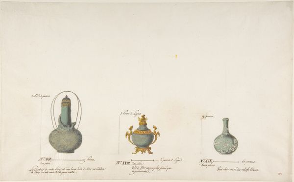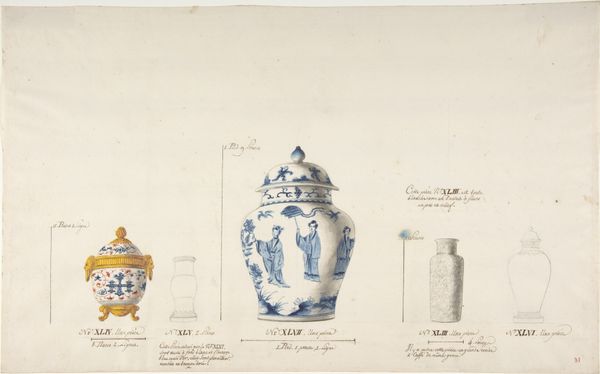 Curator: Here we have Martinus Rørbye's 1836 drawing, "Turkish Jugs and Vessels," a delicate still life rendered in pencil on paper. Editor: Immediately, I'm struck by its fragile beauty. There's a ghostly quality, like memories fading into the light. The drawing captures a lightness and openness on this almost blank sheet. Curator: Rørbye was a key figure in the Danish Golden Age, you know, a champion of Romanticism with a keen eye for the everyday. This piece hints at his travels, his fascination with exotic cultures. Notice how the simple pencil lines almost celebrate the forms of the vessels. Editor: Precisely. To me, that's where the real substance lies. Look closely—we see the process of depiction; the hand that created the vision. The almost scientific attention to detail, without being clinical or cold. The simple means--pencil on paper—allowing him to conjure such a sense of volume. It focuses my thoughts on production, not just aesthetic form. Curator: I see what you mean about the material, that simple gesture speaks to its depth, but for me it evokes something deeply human: nostalgia. The way we imbue objects with meaning. Think about what these objects, likely from Rørbye's own collection, would have represented: adventures abroad, whispers of distant lands. The way he sketches these “souvenirs”, gives a new weight to the very concept of making and collecting. Editor: It's a fine balance he strikes. We're seeing, really, the fetishization of these “exotic” goods. To what extent are we truly appreciating the craftsmanship, versus romanticizing an imagined "East?" That pencil, the paper—those materials have their own history, inextricably tied to colonialism. It really asks questions about the politics of seeing, don't you think? Curator: Absolutely. He captures a transient moment. You feel he wants to honor an impression instead of delivering an objective description. He gives us just enough visual information, trusting us to complete the narrative. It's an act of great intimacy and empathy in the end, almost like whispering a story rather than shouting it. Editor: That subtle rendering opens up more questions the more I look, yes. But maybe this open-endedness is Rørbye's biggest achievement. Thank you for sharing this fragile moment.
