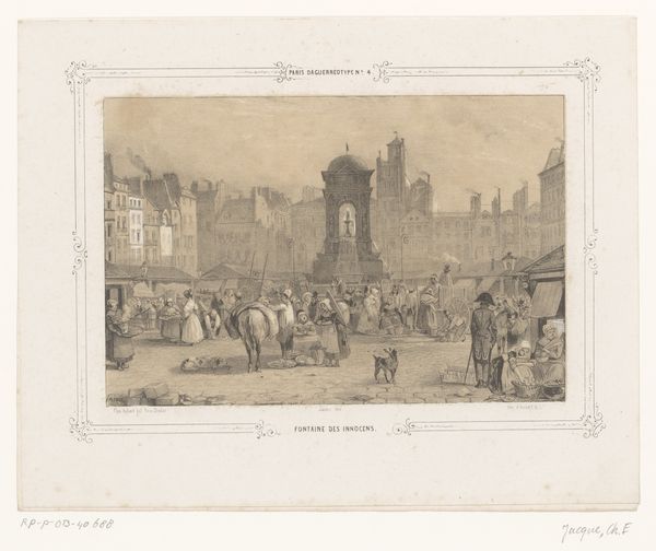 Victor Adam's Markt op de Place du Marché des Innocents captures a bustling Parisian marketplace, alive with commerce. Dominating the background is the Fountain of the Innocents, a Renaissance monument originally constructed as a site for royal celebrations. The fountain, far from being a mere backdrop, tells a story of cultural palimpsest. Conceived in an era of royal pageantry, it once symbolized power and prosperity. But here, surrounded by the clamor of the market, it is repurposed. In ancient Greece, fountains were not just sources of water but sacred spaces, often adorned with sculptures of nymphs and gods, believed to have healing powers. The fountain, now a backdrop, has been transformed by the relentless march of time. The eternal cycle of life and death is palpable; the fountain stands as a silent observer. Just as the snake eating its own tail represents the cyclical nature of existence, these symbols remind us that history is not linear but a continuous, transformative process.
