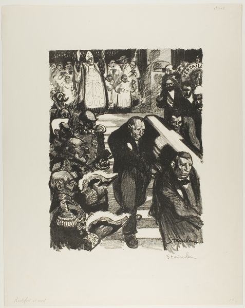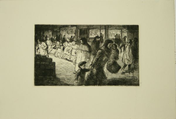 Felix Hess created this print, ‘Twee voorstellingen op straat’ using etching, where the image emerges through a delicate dance of lines. The process, much like life, is about embracing the unpredictable. Look closely and you’ll see how Hess doesn't just depict a scene, he crafts a world. It’s all in the details – the chaotic, bustling market below juxtaposed with the quiet, domestic scene above. The etched lines aren’t just outlines; they're textures, shadows, and whispers. Notice the figures in the market, how they almost blend into one another, a sea of humanity captured in a few strokes. And then, there's that discarded pile in the foreground, a dash of the everyday almost swallowed by the energy of the scene. It’s not just about seeing, it's about feeling the pulse of the street. This print reminds me a bit of Daumier, who was another great chronicler of the everyday. Both artists invite us to look closer, to find the extraordinary in the ordinary.