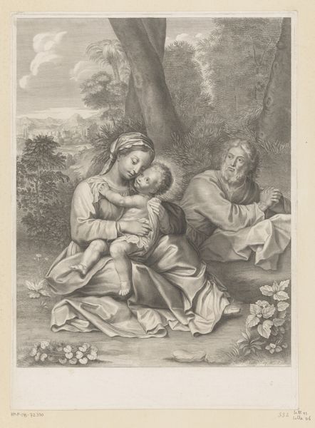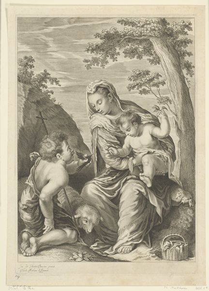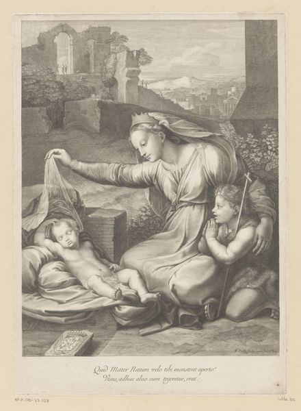 This print, made by Mauro Gandolfi after Reni, is made with etching and engraving. These are intaglio processes, where lines are incised into a metal plate. The material of the print is paper, but the real story is in the metal plate. With engraving, the artist uses a tool called a burin to directly cut lines into the plate. Etching involves coating the plate with a waxy ground, drawing through it to expose the metal, and then immersing the plate in acid, which bites away the exposed lines. The depth of the lines determines how much ink they hold, and therefore the darkness of the printed line. The beauty of printmaking lies in its reproducibility. This image could be spread far and wide, and that accessibility is one reason why printmaking has often been associated with social movements, and the democratization of art. In this instance, it allowed Gandolfi to disseminate Reni’s composition, making it available to a much wider audience.