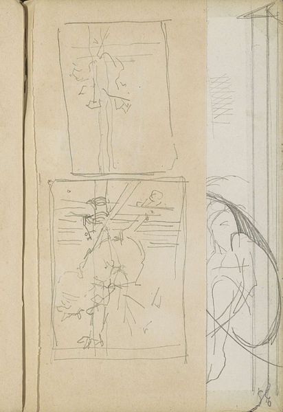 This is a sketch for "Christ blessing the little children" by Niels Larsen Stevns. You can see the beginnings of a scene in thin blue pencil. The artist seems to be searching for the right composition, or the right feeling, blocking in a crowd, a tree, and a bending figure. I love seeing the process like this. It reminds me that art is about trying things out and not being afraid to make mistakes. On the left, there are some abstract marks with heavy black pencil, maybe a warm-up for the hand, or just doodling while thinking. Those marks contrast with the ethereal quality of the rest of the sketch. It gives the piece a sense of depth and mystery, and a grounding in pure mark making. I think of Paula Modersohn-Becker, another artist from this period, who also wanted to capture spiritual or emotional experiences with just a few lines. Both artists show how art can be a conversation between seeing and feeling.