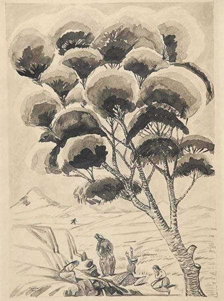 Martiros Sarian made this illustration for the fable 'The Crow and the Fox' using ink, maybe in the 1930s. Look at the hypnotic rhythm of the marks. Each leaf, each tuft of fur, is built up with a patient, repetitive gesture, like the patient telling of a folk story. There’s something so deliberate in the way Sarian coaxes texture from a single color. The paper peeks through, creating a stark contrast that animates the scene. See how the fox’s fur is suggested by the absence of ink, giving it a kind of luminous presence against the darker lines that define its form. It’s like the negative space is just as important as the drawn line. You can see a dialogue with Matisse in the economy of line and the way he suggests depth and form through pattern. Both artists knew that simplicity is the ultimate sophistication, creating worlds with just a few marks, inviting us to fill in the gaps with our own imaginations.