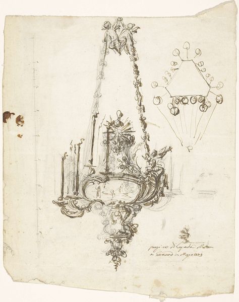 Thomas Johnson made this design for a clock stand using pen, brush and grey ink, sometime in the mid-18th century. It exemplifies the Rococo style then in vogue across Europe, characterized by elaborate ornamentation and asymmetry. However, Johnson was working in London, and this drawing reveals how the Rococo translated into the British context. Note how the design incorporates naturalistic motifs like shells, leaves, and flowers. This reflects Britain's burgeoning interest in natural history and its colonial ambitions, as these botanical and zoological forms were beginning to flood into Europe, becoming emblems of trade and empire. Johnson’s design encapsulates the globalized world of the 18th century, where artistic styles and natural specimens circulated widely, influencing design and material culture. To understand this fully, a historian might consult pattern books, trade records, and scientific treatises to explore the intersections of art, commerce, and science in Johnson's time. What we see here is not simply a clock stand, but a reflection of Britain's evolving relationship with the world.