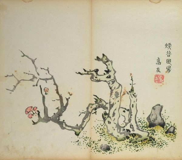 Editor: This is "Plum Blossoms" from the Ten Bamboo Studio Manual, created by Hu Zhengyan. I’m struck by its delicate lines, especially given that it's a woodblock print. What can you tell me about the manual's production? Curator: The Ten Bamboo Studio Manual was a revolutionary contribution to color printing technology. Its influence spread because it made art accessible through mass production, impacting consumption. Editor: So, its value isn't just aesthetic but also lies in its process? Curator: Precisely. The manual blurred lines between art object and commodity. The materiality of the ink, paper, and carved blocks speaks volumes. Editor: I never thought about it that way. It's interesting to see art democratized through production.