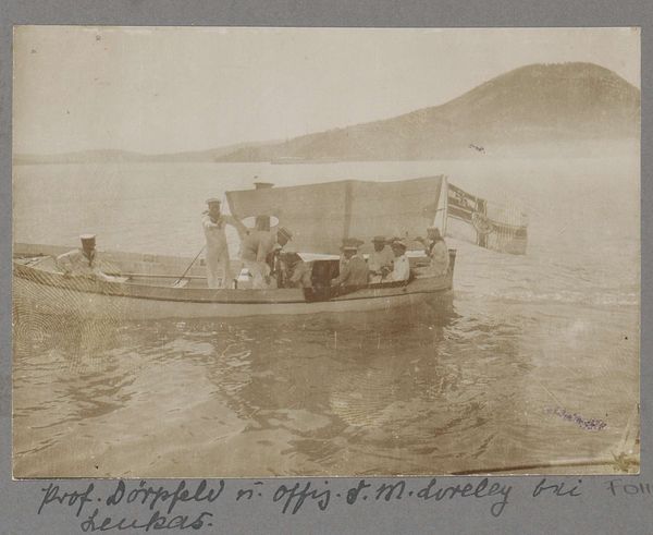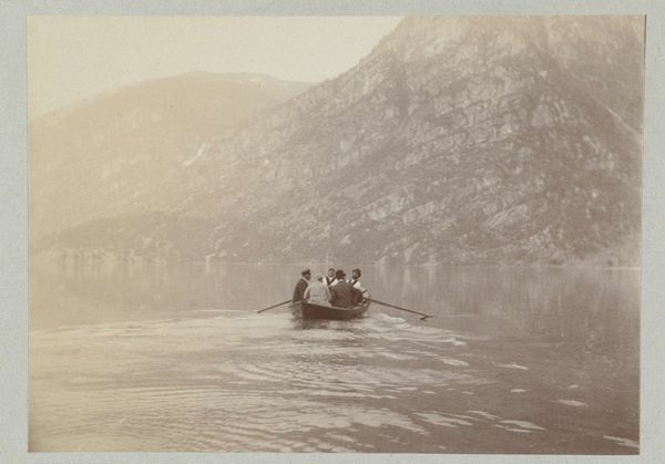Editor: Here we have a photograph from around 1929, showing a rowboat filled with students on Lake Constance – or the Bodenmeer, as it's also known. It's so grainy; it almost looks like a pencil drawing! It feels serene, almost dreamlike, yet the students seem quite focused on their rowing. What's your take on this image? Curator: I see this photograph as a fascinating document of labor and social conditioning. Look at the boat itself – the product of skilled craftsmanship, specifically designed for a purpose, to instill discipline. And the matching clothing...how does the very act of dressing these children similarly contribute to a sense of enforced uniformity within a social class structure? Editor: That’s interesting, I hadn’t considered the boat itself as such a key element. Curator: Think about it - the boat is the site of physical exertion and implicitly, of social maneuvering. Rowing in sync, all those moving parts—what is the process of production of this image, what can we interpret? Do the uniforms erase individual identities? What labor goes unseen in the pursuit of this carefully constructed image of leisure and education? Editor: I guess I was more focused on the aesthetic qualities rather than the, kind of, mechanics and societal context within which this boat scene existed. I’ll definitely look closer next time! Curator: Precisely. The materiality and modes of production in both the boat itself and this photographic representation thereof are equally key to a complete analysis.