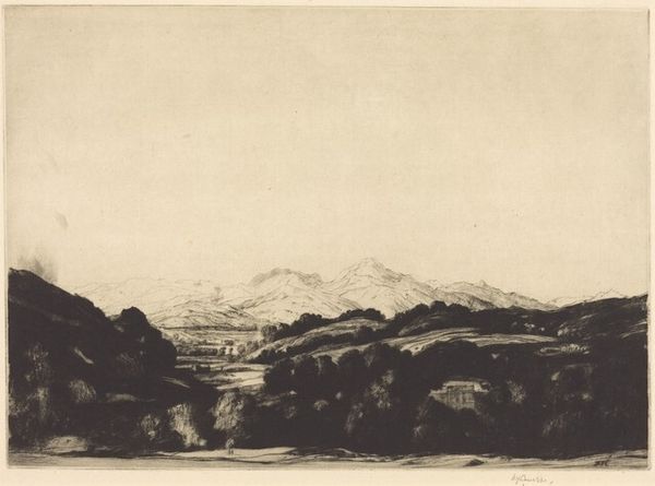 David Young Cameron created this etching of 'The Cairngorms'. It is a landscape of the Scottish Highlands and offers a glimpse into the cultural valorization of nature that occurred at the end of the 19th Century. Cameron, as a Scottish artist, was part of a movement which helped construct a national identity intertwined with its land. The Scottish Highlands, often romanticized in art and literature, became a symbol of cultural purity and resilience. But this romanticization often obscures the complex history of the region, including the Highland Clearances. Here the land is depicted as untouched, pristine, and sublime. The emotional experience of viewing such a landscape evokes a sense of longing and belonging, but it also risks erasing the human stories and struggles that have shaped it.