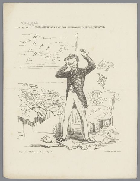 This print by Johan Michaël Schmidt Crans, made in 1869, captures the proliferation of newspapers following the abolishment of the Dutch newspaper tax. Dominating the scene, we see a figure walking amidst a field where newspapers sprout like mushrooms. The newspapers, bearing titles, symbolize the rapid growth and spread of information. This imagery taps into a collective anxiety: the fear of being overwhelmed by the uncontrollable dissemination of news. Across cultures, the mushroom has symbolized rapid growth. Here, the artist plays on this symbolism, evoking a sense of unease. It's a visual metaphor that transcends time, reminiscent of ancient allegories where nature reflects the human condition. It reflects a deep-seated human fear—the fear of being overtaken by something beyond our control. The rapid growth of media becomes a mirror, reflecting our own anxieties about progress.