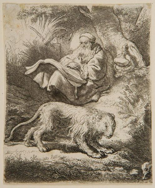 Rembrandt van Rijn created the etching 'St. Jerome Reading.' During the 17th century, there was a renewed interest in translating the Bible into local languages, and Saint Jerome was central to this movement because he translated the Bible into Latin. In this print, Rembrandt presents Jerome not as a regal figure, but as an aging scholar in quiet contemplation, deeply engrossed in study. There’s a touching intimacy in how Rembrandt portrays this saint. The lion at Jerome’s feet, a symbol of transformation, adds a layer of depth. Lions were often associated with royalty and power, but here the lion is a calm presence, hinting at the idea that true strength might lie in humility and wisdom rather than dominance. The intimate scale of the etching invites viewers into Jerome’s private world, encouraging reflection on the personal dimensions of faith and knowledge. Rembrandt's 'St. Jerome Reading' not only immortalizes a key figure in religious history, but also prompts a consideration of faith, knowledge, and the human condition.