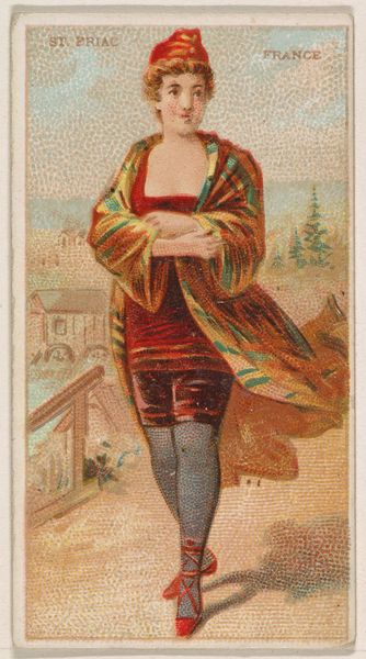 Editor: This is "Derby Day, England," a coloured-pencil print from 1890 by W. Duke, Sons & Co. It seems so dainty and detailed for something that would end up in a cigarette pack! What's interesting to you about its history? Curator: This print is fascinating as a consumer object, offering insights into labor, production, and class. Consider the accessibility Duke cigarettes provided to a wide market through mass production. What does this say about who was meant to see and consume this image of an elite event like the Derby? Editor: So it's not about high art, but about…accessibility and branding? The image itself feels secondary? Curator: Precisely. Focus on the material reality: cheap colored pencil prints, bundled with addictive commodities. The image of "Derby Day" isn’t just depicting leisure; it's *selling* aspiration, creating a desire to consume both the spectacle of high society *and* Duke cigarettes. Think about the production of colored-pencil prints versus paintings. How does the former democratize image production? Editor: It becomes something anyone can own, in a sense. It's not just a horse race; it's social mobility packaged with tobacco. Were the laborers creating the art aware of this double meaning? Curator: A pertinent question. We can research the printing companies and the mostly anonymous artisans. Were they unionized? What were their working conditions? Understanding these conditions is key to deconstructing the glamour presented in the image itself. How does viewing the piece in this museum context change its intended meaning? Editor: I guess seeing it divorced from the cigarette pack makes me focus less on consumption. I never considered how materials and the production methods can impact an artwork's meaning so profoundly. Curator: Indeed. Materiality can expose the social structures inherent in art production, challenging us to question notions of value and artistic intention.