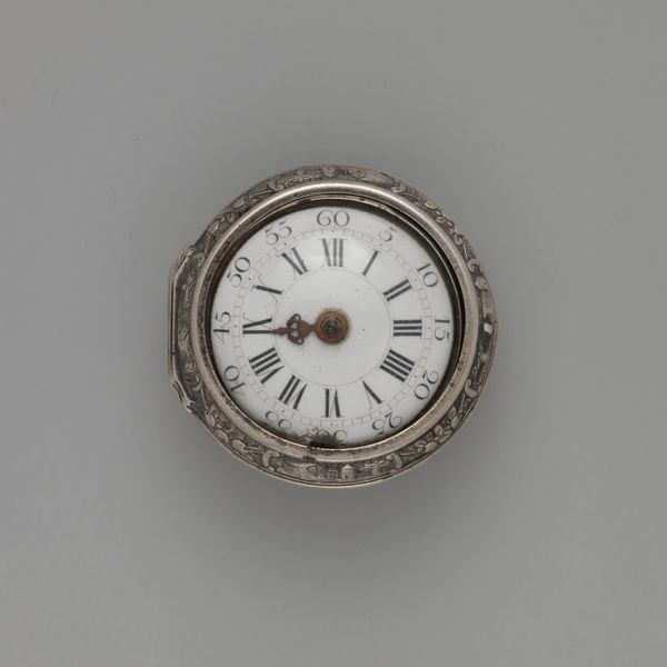 Editor: This object, called “Watch,” dates from 1635 to 1655. It's crafted from metal and is currently housed at the Metropolitan Museum of Art. It strikes me as austere yet precious – how can something functional also feel so…ornate? What layers of interpretation can we peel back? Curator: That's a great starting point. How do you see the implications of time as an element of power, class, and gender in the 17th century, bearing in mind that owning a watch wasn't about knowing what time it was? How could a watch be used to project prestige, privilege, and patriarchal authority in a culture shaped by societal standards? Editor: So, more about showcasing access rather than pure utility? A symbolic declaration? Curator: Precisely! It would subtly broadcast a sense of status and economic privilege in Baroque-era European culture. Moreover, objects like these had their influence upon female figures of this period. What’s your thinking on how the restrictions of patriarchal norms impacted those women, and in what measure this item also worked in conjunction with systems that regulated social mobility for women at the time? Editor: That’s complex! Perhaps displaying items like watches acted as constraints. And conversely as quiet declarations of resistance. Thanks – seeing it through the lens of gender and power makes the artifact speak volumes. Curator: Indeed, and this illuminates just how much a seemingly straightforward object can reveal the nuanced realities of social dynamics that permeated throughout past societies.