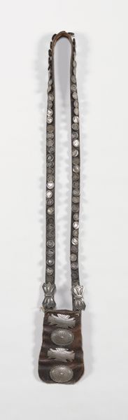 Editor: So, this is "Daily Yoke," a 19th-20th century textile piece made of cotton and fiber art. It's attributed to the Hsuxi Miao people. There's a strong vertical emphasis, with bands of intricate patterns and a darker section in the middle. I'm curious, what strikes you most when you look at it? Curator: It’s fascinating to consider this object within the context of cultural preservation and resistance. How do we understand "Daily Yoke" as more than just an aesthetic object? What stories does this textile hold about the Miao people’s lived experiences, their traditions, and perhaps, their challenges? Editor: Well, I see the title "Daily Yoke," and I wonder if it's referring to a burden, or daily labor... given it's a piece of clothing, perhaps how clothing represents identity or status within the culture. Curator: Exactly! And consider the period it was created in – the 19th and 20th centuries were marked by significant social and political upheaval, particularly for many indigenous communities. Is it possible to read this "yoke" not just as daily labor, but also as a symbol of the weight of cultural expectations, assimilation pressures, or even resistance against external forces? How does the act of creating and wearing such a piece become a form of agency? Editor: I didn’t think about it that way. The detail feels really intentional now; a deliberate act of asserting identity. Do you think the motifs used have a specific meaning connected to resistance? Curator: Absolutely. While the exact meaning may require deeper ethnographic research, we can appreciate the artistic choices, such as the repeated geometric patterns and the careful use of color, as intentional acts. Perhaps they encode specific clan histories, spiritual beliefs, or even coded messages of solidarity. Can we look at this piece as a testament to the power of material culture to communicate resistance and cultural survival? Editor: I see the work with totally different eyes now. I was only considering aesthetic features, rather than it being an active expression of cultural endurance and coded communication. Thanks! Curator: My pleasure. Considering the political implications of cultural production is an important step in understanding the multilayered significance of artworks like this one.