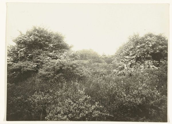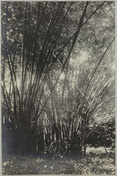 Editor: Here we have Hendrik Doijer's "Bamboe op Tourtonne," a photograph from the early 1900s. It depicts a dense cluster of bamboo. What I find striking is the play of light filtered through the leaves. What strikes you about it? Curator: As a materialist, I'm drawn to considering the act of photographing itself. Photography democratized representation, making images more accessible and challenging traditional artistic hierarchies. What impact might that accessibility have had? Editor: Well, maybe photography, in contrast to painting, made art more closely tied to production or the everyday… since images became more affordable and common. Curator: Exactly. Doijer's choice of subject - bamboo in a colonial context - is crucial. How does the mechanical reproduction of this "exotic" landscape factor into the economics and consumption patterns of the early 20th century? Editor: So it's not just about a pretty scene; it's also about the materials and social implications involved in its production and circulation as an image, something meant to be viewed in the West? Curator: Precisely! Consider the materiality of the photograph itself – the paper, the chemicals, the printing process, the labor involved in creating and distributing this image. Think of the market it fed. Does that shift your understanding of the work? Editor: Absolutely. It's much more than just a tranquil image. The photo is also a kind of manufactured object itself that played into broader material conditions of that era. It almost prompts us to think about things that were *not* photographed, like other commodities! Curator: Right. By examining the material conditions surrounding "Bamboe op Tourtonne," we gain a much richer understanding of the social forces at play in its creation and reception. Editor: Thanks; it definitely changes how I think about photography! I never considered its production, material, and social implications as crucial as the image itself.
