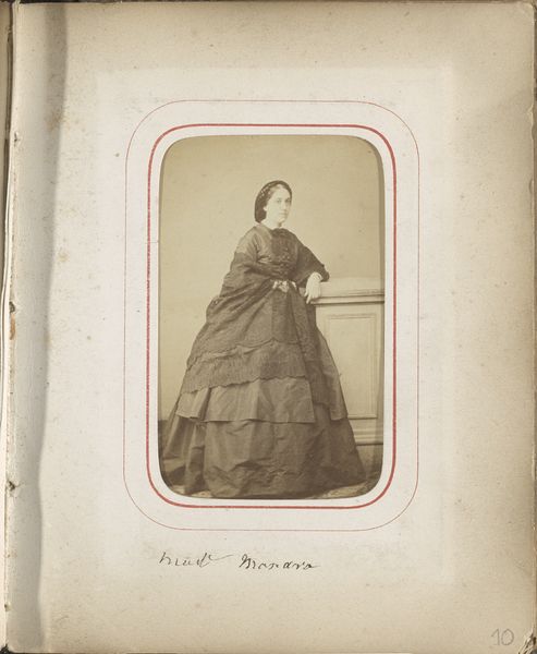 Vuagnat created this albumen print portrait of Madame Rameau, sometime between 1859 and 1870 in the Netherlands. This photograph provides a glimpse into the visual culture of the Dutch middle class during that time. Madame Rameau’s attire, the furniture, and the backdrop all contribute to the image's meaning. The striped dress, the patterned chair, and the classical vase suggest a striving for respectability and refinement. What might seem a straightforward depiction of an individual becomes an insight into the social codes and aspirations prevalent at the time. To understand this portrait more fully, we can consider the historical context. The rise of the middle class in the Netherlands, fueled by trade and industry, created a demand for images that reflected their status and values. Photographic studios emerged as institutions that catered to this desire, offering a means of self-representation that was both accessible and affordable. We can use these institutions, along with other historical sources, to further explore the complex interplay between art, society, and individual identity.