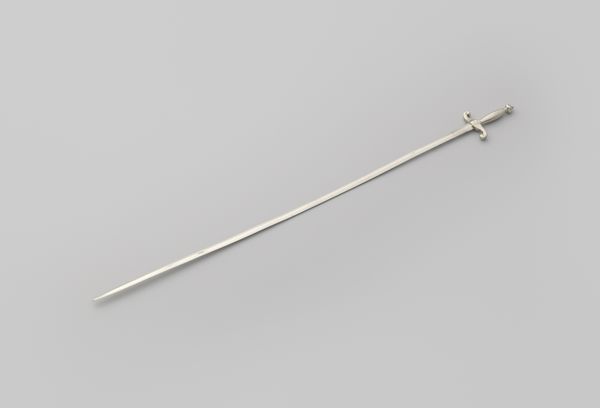 This is a silver and ebony herbal wine spoon, crafted by Jan Frederik Everts, who lived through the revolutionary transformations of the late 18th and early 19th centuries. Utilitarian objects like this spoon offer a glimpse into the rituals of the past. The spoon whispers stories of social class, of leisurely consumption. These wines, infused with herbs and spices, were the preserve of the wealthy, who had both the means and the time for elaborate dining customs. The spoon’s twisted ebony handle is particularly interesting: the dark ebony contrasts strikingly with the gleaming silver, each material speaks to global trade networks, to colonial power. Consider the labor required to source these materials. A piece like this prompts us to reflect on whose hands shaped it, and whose bodies bore the cost of its creation. It invites us to consider the complicated relationship between luxury, labor, and power.