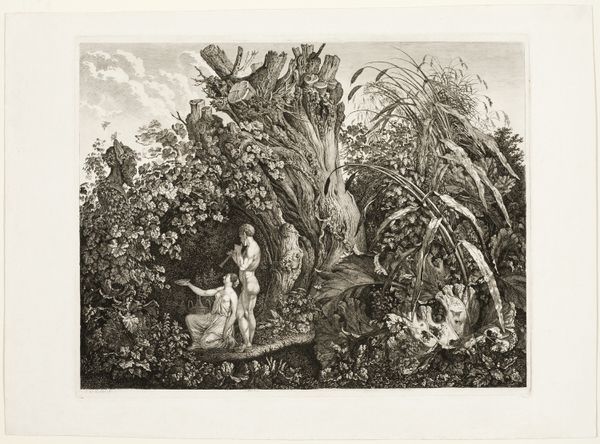 Curator: We’re looking at John Martin’s “Scene from Opera,” an ink, watercolor, and graphite drawing on paper currently housed here at The Art Institute of Chicago. It’s undated, but his Romantic sensibility is quite evident. What do you make of it? Editor: Immediately, it feels staged. The monochromatic palette lends a dramatic flair, heightening the emotional intensity, while the composition feels…calculated. It's quite evocative in its own way. Curator: Absolutely, it captures the theatrical sensibilities that permeated the period. Think about the burgeoning opera houses, the spectacles, and the emphasis on emotion. The choice to depict what seems to be a theatrical performance, perhaps an adaptation of Shakespeare. That becomes particularly poignant, as theater played a pivotal role in shaping public opinion. Editor: The way Martin uses light and shadow is fascinating. See how the figures in the foreground are illuminated while the background dissolves into almost ghostly darkness? That sharp contrast really does evoke a dream-like state that speaks of romantic sublime. Curator: Yes! And note the social commentary implicit within the staged drama. These sorts of plays became a powerful form of popular expression, challenging established social and political norms through narratives of heroism or villainy. Editor: Looking closer at the characters themselves, their costumes—so meticulously rendered! It’s evident Martin’s concerned with every element contributing to the visual texture and dramatic thrust of the work. How those details must have played to an audience. Curator: And it is fascinating that this sort of escapism through art actually held considerable significance in that society’s ability to reflect upon itself. The very act of observing such heightened scenarios could encourage conversations and challenge prevailing conventions within the audience, wouldn’t you agree? Editor: Certainly, it offers a striking convergence of theatricality, dramatic technique and visual power. One almost gets lost in the fantasy, even now. Curator: A fascinating reminder that even staged dramas can provide valuable glimpses into the social fabric that shaped our past, wouldn’t you agree? Editor: Absolutely; I've come away with an understanding of just how art shapes meaning, then and now.