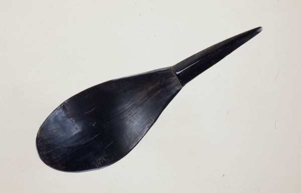 This is a Tlingit spoon, whose date is unknown, located at the Minneapolis Institute of Art. The spoon, measuring about six and a half inches, presents a striking contrast between its broad, ovular bowl and the sharply tapered handle. The entire piece appears to be carved from a single, dark material, possibly wood or horn. Observe how the smooth, continuous lines define its form, creating a sense of both elegance and functionality. The spoon's structure is a study in duality; the bowl suggests capacity and volume, while the slender handle evokes precision and control. The dark, uniform coloration enhances the tactile quality of the material, inviting a contemplation of its physical presence. This simplicity of form, devoid of ornamentation, speaks to a sophisticated understanding of design where utility and aesthetics are seamlessly integrated. It is a testament to the enduring power of minimalist expression, where the form itself communicates a profound sense of purpose and cultural identity.