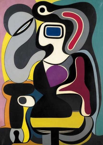 Editor: This is Auguste Herbin's "Abstraction," painted in 1928 using, what I believe is acrylic paint, which feels a little unusual. It's certainly a feast for the eyes with all these shapes. It feels... contained, somehow. What’s your initial take on this piece? Curator: Contained is an interesting word for it! For me, it vibrates, struggles to escape its two-dimensionality! Herbin’s relationship with colour was profound, like a musician with notes. Look how he juxtaposes these bold planes—that cobalt blue against the yellows and ochres – it's a visual chord, resolving, dissonant, resolving again. I think what we see is his attempt to uncover an underlying sense of form and volume. What’s interesting, isn't it, how the shapes overlap, push and pull? It has almost human dimension. Do you see that? Editor: Human? I hadn't really thought about it that way. But now that you mention it, some shapes do vaguely resemble figures. Especially the brownish-red shape with an eye-like shape on its head! Curator: Yes! Think about the moment this was created! 1928! Europe between the wars, rebuilding, questioning everything. Herbin’s abstraction wasn’t about decoration; it was about searching for a new visual language to express the shifting reality, almost primal, wouldn't you say? He’s deconstructing reality. How did he believe painting related to musical composition? Editor: That’s interesting! It does feel very composed, even structured in its chaos! Curator: Right? What did Herbin name his colours? Editor: Hmm, I actually do not know, I was fixated on the forms... Curator: Yes, forms might bring order to shapes and planes... He gave each a name like sounds and music. It almost lends them new life or feeling in my opinion. That certainly helps him relate the two domains to one another, I would guess. Editor: I like this association with sounds... Makes me feel more eager to keep listening to the silent expression it reveals. Thank you so much!