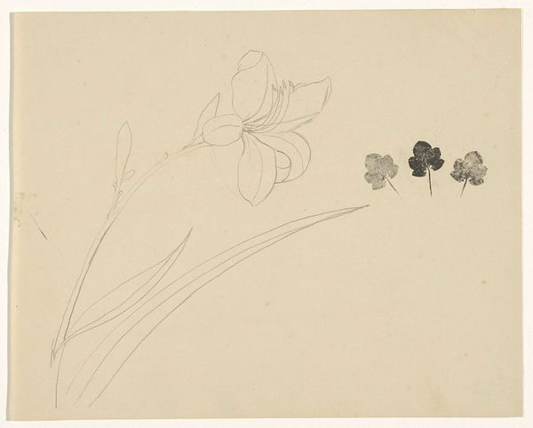 Antoon Derkinderen made this study of a nasturtium flower in the Netherlands, but we don't know exactly when. The drawing provides a glimpse into the botanical studies that were popular during that time. Depicting the plant in both a colorful study on the left and a pencil sketch on the right, this work presents a contrast between the aesthetic appreciation and the scientific analysis of nature. It reflects a period when the Netherlands, with its rich colonial history, saw an increased interest in exotic flora. Botanical gardens and institutions played a key role, as places where artists and scientists alike could study and depict plants from all over the world. Derkinderen's approach—combining art with scientific observation—mirrors the era's drive to understand and classify the natural world. To better understand this work, it would be interesting to look at Derkinderen's other studies, as well as the botanical publications and collections that would have been available to him.