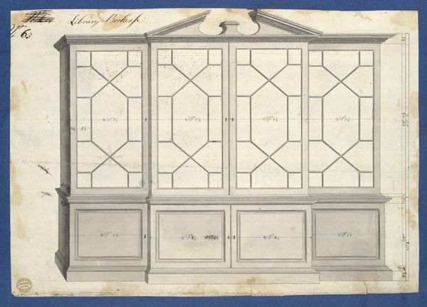 Curator: What a strikingly precise vision! Thomas Chippendale's "Library Bookcase, from Chippendale Drawings, Vol. II," dating back to 1760, showcases the elegance of Baroque design. Created using drawing, print, and engraving techniques, this piece residing at the Metropolitan Museum of Art offers insights into the opulence sought after during the era. Editor: Opulence indeed. My immediate feeling is one of grandiose control. The strict symmetry, the heavy ornamentation – it's all very self-assured, even a little imposing. I wonder about the relationship the owner of this bookcase would have with their books. Curator: The imagery suggests more than just mere possession. Those swirling flourishes, almost organic in their complexity, framing each section – they speak to the contents being valued not just for knowledge, but for status. Consider too that Baroque design aimed at stimulating awe and reverence, feelings connected in this design to this collection of books and what they contain. Editor: And that architectural framework becomes a way of asserting dominance over culture and knowledge, doesn't it? These aren't just shelves, they're a statement of intellectual and social authority. You can almost see the elite Georgian collector, carefully curating his library as a performance. It makes me think of the politics embedded within these structures. Curator: Precisely! The choice of motifs reinforces that societal position: the urns, the foliate patterns… Each is a recognizable symbol to communicate sophistication. What's also interesting is seeing the raw plans like this. We are confronted with an intimate understanding of how carefully calculated it all was. Editor: Absolutely, seeing this level of deliberate construction offers a striking glimpse into the cultural mindset of the time. It's fascinating how an object as seemingly simple as a bookcase can reflect such complex societal dynamics. Curator: By unraveling the symbols, we've unveiled something truly evocative about culture. Editor: An aesthetic that spoke power so eloquently! I'll never see a bookcase the same way again.