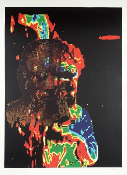 Editor: This is Sir Sidney Nolan’s "Kelly Head I," its date is unknown and it’s part of the Tate collection. The overlaid colors create an interesting texture. How did Nolan’s process affect the final product? Curator: I see a fascinating interplay between representation and materiality. The silkscreen process, with its inherent layering and potential for slight misalignments, mirrors the contested narrative of Ned Kelly, a figure whose legend is both celebrated and criticized within the social fabric of Australia. The materials speak to this duality, don't you think? Editor: I think the idea of silkscreening and layering mirroring Ned Kelly’s story is quite fascinating! Thank you. Curator: Considering the materials and the means of production allows us to unpack the social context more fully, yes?